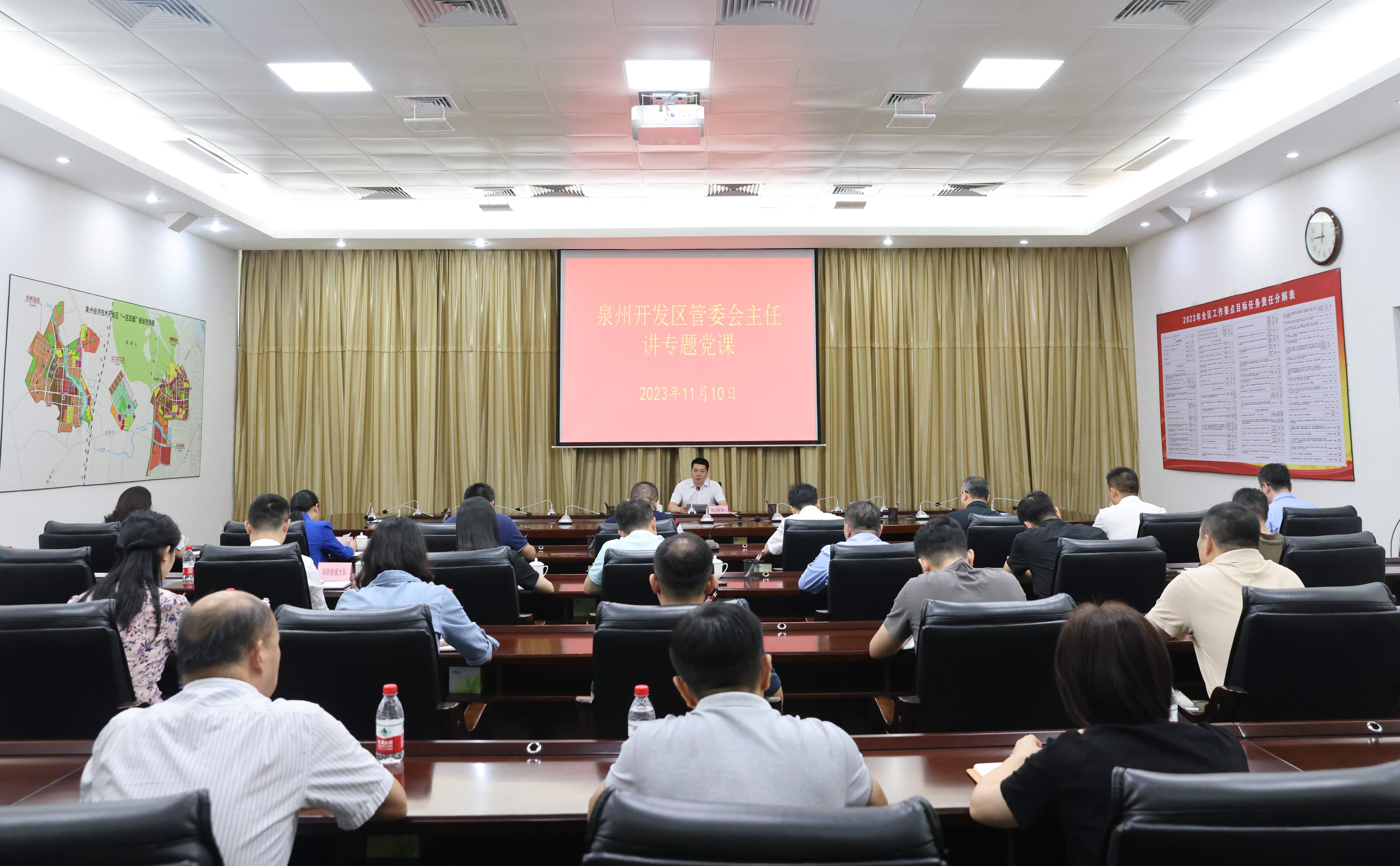 11月10日上午,管委会主任、主题教育领导小组副组长陈拥军讲授主题教育专题党课。管委会内设部门科级干部及科室负责人,公安分局、税务局、市场监督管理分局、交警大队、消防救援大队、城管分局等主要负责人参加。